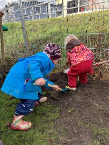 Am 25. November des vergangenen Jahres haben wir bei sonnigem Wetter mit Gartenfreundinnen, Pflanzhelfern und fleißigen Kindern sechs Obstbäume und 36 Sträucher auf Gemeinschaftsflächen und im ehemaligen Garten #15 (auf dem die Container für Werkzeug des KGV stehen) gepflanzt. Zehn Wildrosen wollen wir noch nachpflanzen, da sie zu diesem Zeitpunkt nicht lieferbar waren.